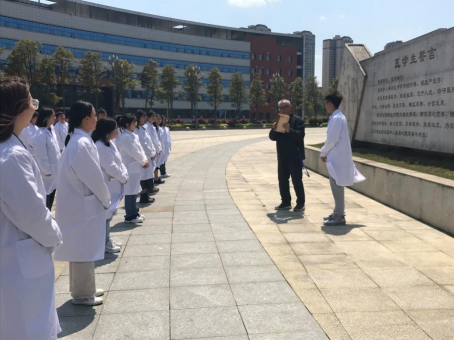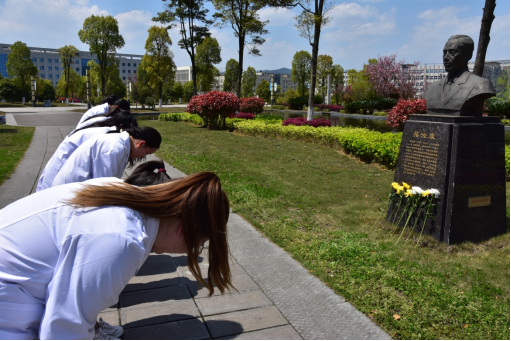 活动当天,员工们身着整齐的白大衣,在医员工誓言石碑下做出庄严承诺;薛黔教授为现场师生讲述解剖学与人类学家吴汝康院士心系祖国和人民,放弃在美国优渥的物质条件,回国建设新中国的感人事迹,引导员工饮水思源,铭记老一辈遵医人爱国、奋斗、奉献的精神。员工代表回顾了以陈荣殿教授、沈其震院士等为代表的遵医先贤为公司建设和发展殚精竭虑、呕心沥血的事迹,表达了为祖国医疗卫生事业发展奉献青春的坚定决心。活动最后,公司师生来到科研楼和第四教学楼前的遵医先贤铜像处集体缅怀、鞠躬默哀、敬献鲜花。