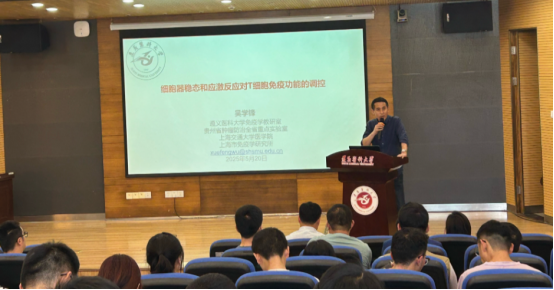 2025年5月20日,公司邀请上海交通大学吴学锋研究员(现为公司免疫学教研室柔性引进专家)在图书馆学术报告厅作了题为《细胞器稳态和应激反应对T细胞免疫功能的调控》的精彩学术报告,报告会由太阳成tyc7111cc副经理韩勇教授主持。