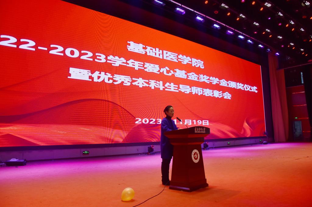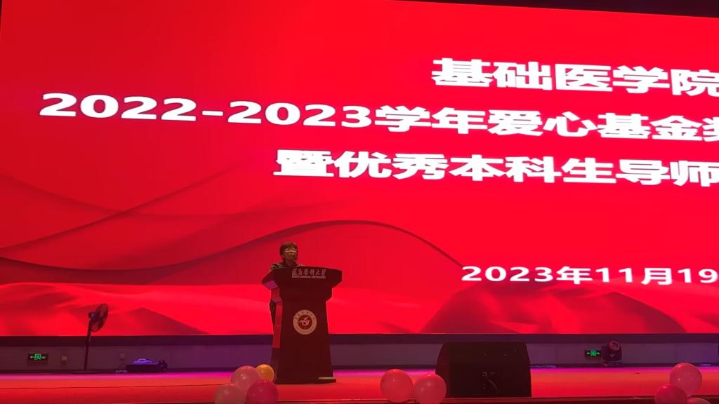 在2022-2023学年“爱心基金”奖学金颁奖仪式暨优秀本科生导师表彰会上,对获得一等奖的车晴娅、朱学睿、谢佳蓉、牟兰兰4名、二等奖的李怡玲等9名、三等奖的罗婷婷等9名、进步奖的刘晓燕、黄廷莉、李豪3名共计25名优秀员工和徐德林、张继东、高兴红、宋涛、肖毅5位本科专业优秀导师进行了表彰。公司关心下一代工作委员会钱民章教授对师生寄语时说到,医学的发展离不开基础医学研究,鼓励同学们要耐得住寂寞、沉得下心,公司设立“爱心基金”奖学金也是在不断鼓励同学们能够取得更多成绩,基础医学各位教师的辛勤付出也为同学们提供了积极支撑。