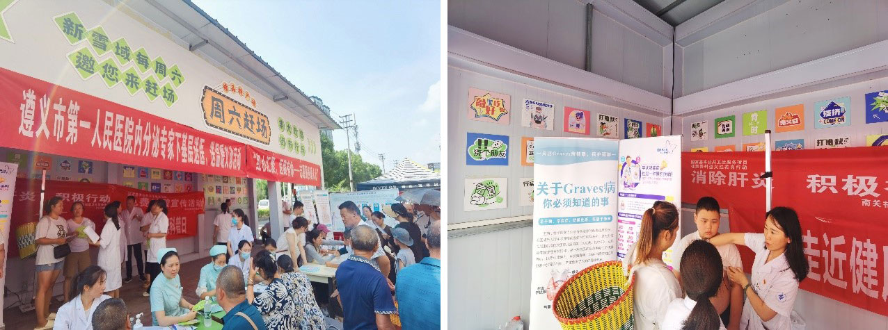 随着"健康中国"战略的深入实施,"大健康"理念已成为满足人民群众健康需求的时代强音。2024年7月26日,太阳成tyc7111cc免疫学教研室于红松教授及其科研团队携手第三附属医院内分泌科及红花岗区南关街道社区卫生服务中心,在新雪域成功举办了以"红心汇聚,医路有你"为主题的健康科普与义诊活动,旨在深化公众对内分泌甲状腺疾病的认识,普及关键健康知识。