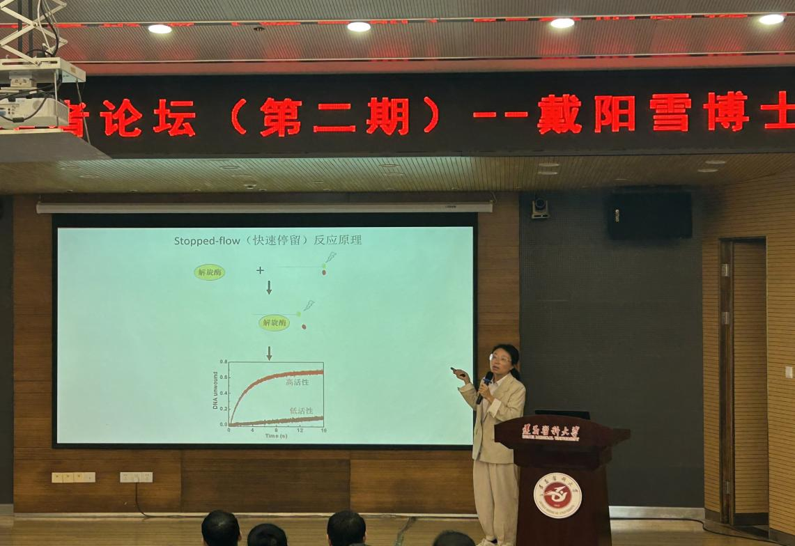 戴阳雪博士主持国家自然科学基金项目1项、省厅级课题共2项,在《Nucleic Acids Research》《EMBO reports》《Journal of Molecular Biology》等期刊发表SCI论文9篇。论坛主要介绍了该团队围绕解旋酶结构与功能关系开展的研究,聚焦活性中心结构解析及其酶学功能研究。以重大疾病相关蛋白的异常构象为切入点,系统解析其在病理状态下的分子机制,助力新型药物靶点的发现与验证。同时,积极探索基于蛋白质活性调控的新型治疗策略,挖掘蛋白质功能精准干预在治疗层面的应用潜力。在互动环节,参会人员踊跃提问,就感兴趣的问题与戴阳雪博士进行了热烈讨论。