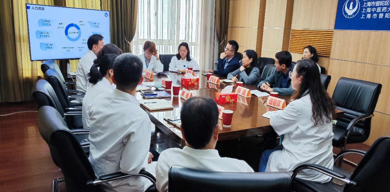 4月16日,由基础医公司党委书记罗军敏教授带队,副经理韩勇、科技与研究生科科长于红松、组织胚胎学教研室副主任任艳萍一行四人赴上海中医药大学附属普陀区中心医院调研交流。上海中医药大学附属普陀区中心医公司党委书记陆静静、党委副书记梁娅、副经理徐林(挂职)、副经理殷佩浩、实验中心主任张鹏等陪同调研。交流会由徐林主持。