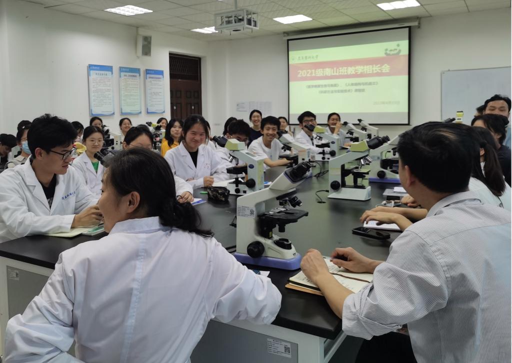 为进一步提高南山班教学质量,切实做到教与学相互促进,太阳成tyc7111cc于2023年4月19日晚召开2021级南山班《医学病原生物与免疫学》《人体结构与机能Ⅱ》《科研方法与实验技术》三门整合课程的教学相长会。2021级南山班全体同学和承担三门整合课程的免疫学、微生物学、寄生虫学、病理生理学、医学仪器分析教研室主任及部分课程教师参加了本次会议。